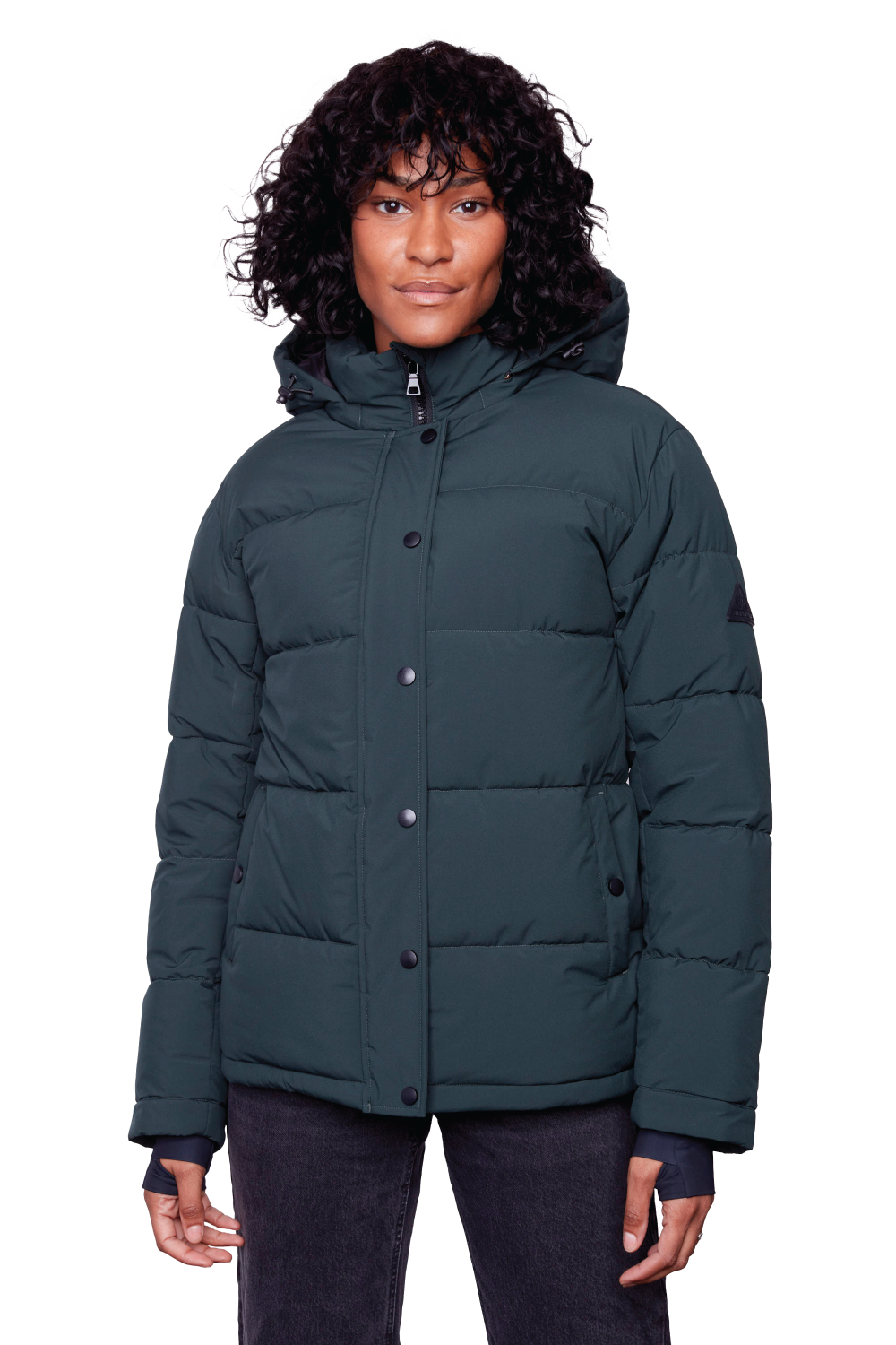 FORILLON | WOMEN'S VEGAN DOWN (RECYCLED) SHORT PUFFER JACKET, DEEP GREEN