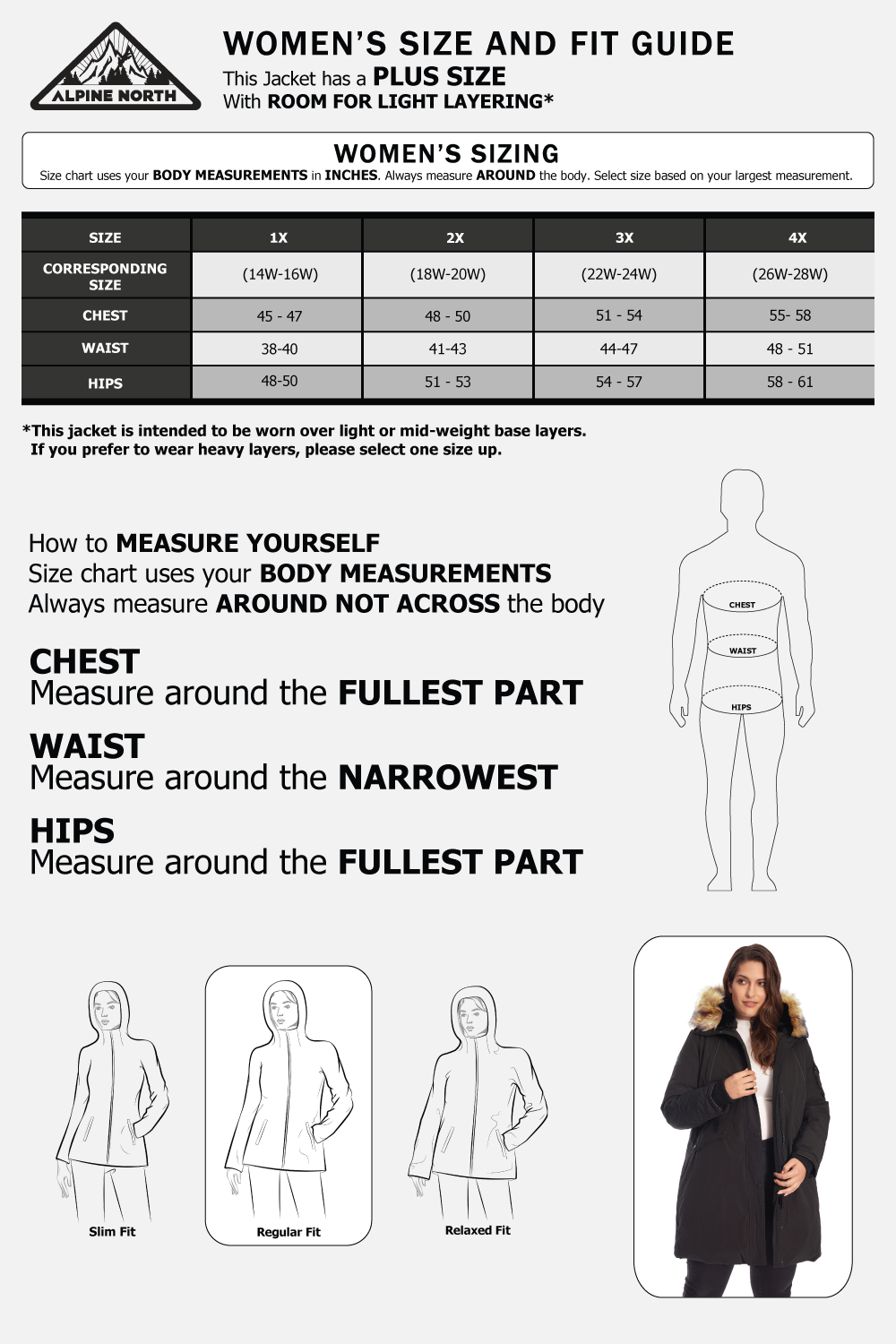 Our jackets are seriously warm, so we have designed them to be worn over light clothing or base layers. If you are someone who loves to layer up with heavier sweaters, we suggest ordering one size up from your normal size.