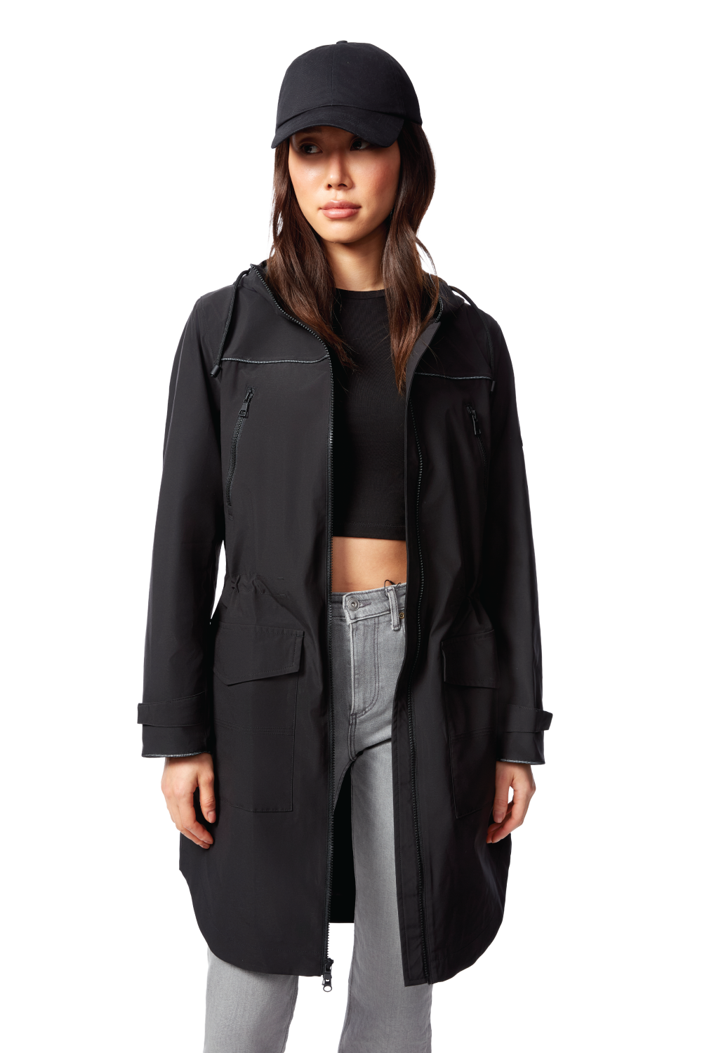 KUSAWA | WOMEN'S DRAWSTRING RAINCOAT, BLACK